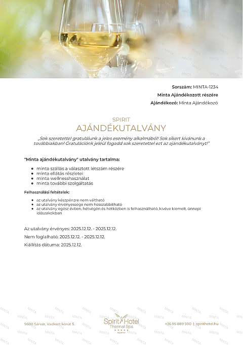 - A Spirit Signature Dinner utalvány egy elegáns büfévacsorára jogosít az ötcsillagos Onyx étteremben. Vendégeinket friss, szezonális alapanyagokra épített fogások, látványkonyhán készült specialitások, gondosan kiválasztott desszertkínálat, valamint válogatott helyi és nemzetközi ínyencségek várják a vendégeket.